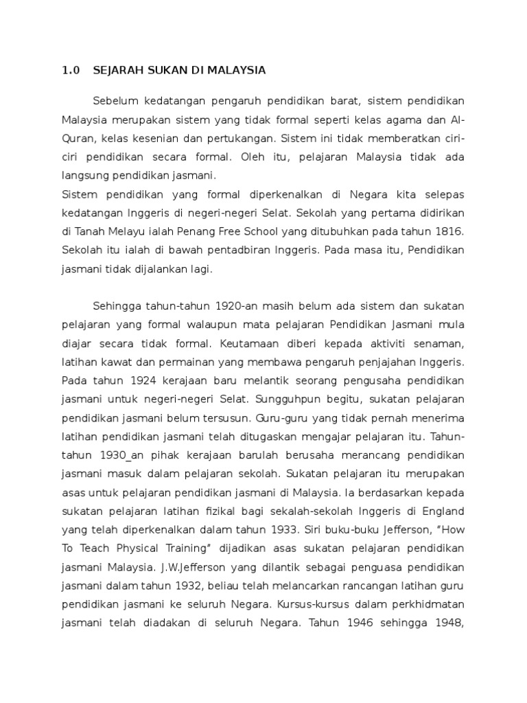 Sejarah Sukan Di Malaysia Dan Perkembangan Sukan Pdf